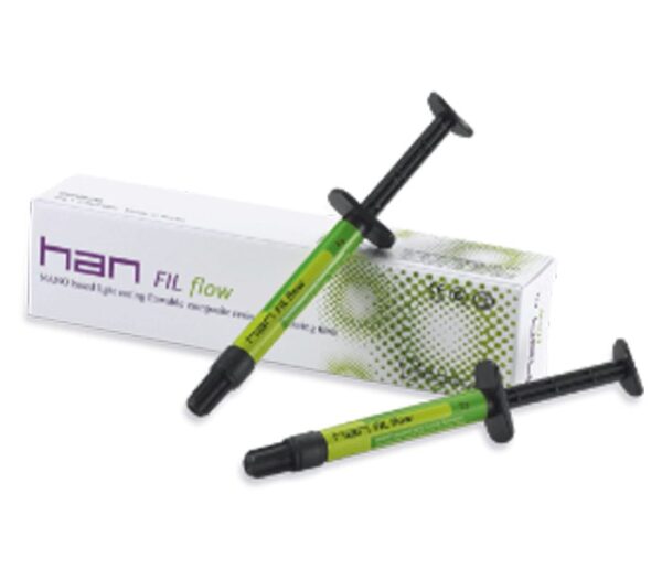 کامپوزیت فلو رزینی HanFil Flow Resin Composite جهت ترمیم های کوچک و کم عمق دارای فلو عالی، شرینکیج پایین در